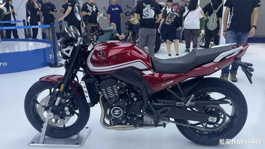 终于讲到重庆摩博会上的新车了,最顶流的肯定是张雪的四缸复古街车500F了,而且还是由张老板亲自介绍的,虽然车挺丑的,但是29980元的定价所带来的性价比确实挺高的,别的不说,这470cc的直列四缸就足够有诱惑力了,73.4匹的最大马力极速能拉到205km/h,想想就很爽。至于配置全面性也是挺到位的,该给的基本都有,就是没啥大品牌的配置而已。