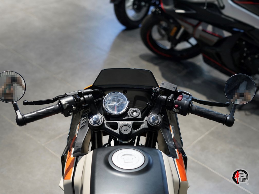 硬件方面,减震系统采用倒置前叉与中置后减震的组合(厂队版前叉为金色),在面对路面颠簸时能提供不错的滤震效果与支撑性。刹车系统采用前后盘刹,前210mm单盘配双活塞卡钳,后190mm单盘配单活塞卡钳,在原有双通道ABS的基础上,新增了TCS牵引力控制系统,在湿滑路面或急加速时,有效抑制后轮空转,为骑行增添一份主动安全保障。