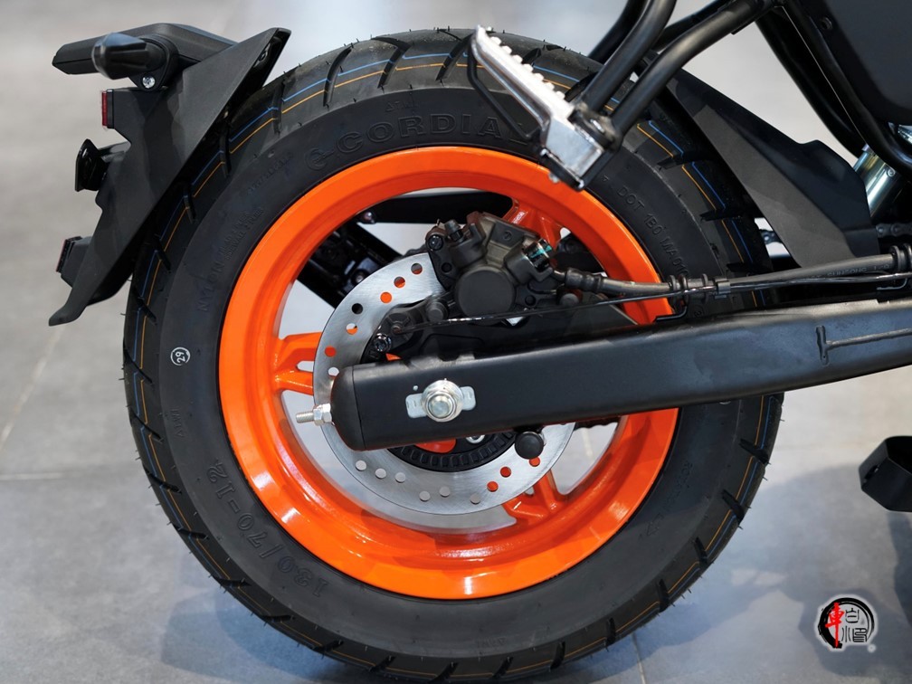 底盘车身采用钢管编织车架,在确保刚性的同时达成了114kg的轻量化整备质量。其尺寸极为紧凑(长1740mm,轴距1204mm),无论是穿街过巷还是车位寻觅都优势尽显。最关键的改进之一是座高降至740mm,配合前移的脚踏与加高的分离把,形成了一个相对直立的街车式骑行三角,显著提升了日常骑行的舒适度。油箱容量7L,综合续航约300公里。