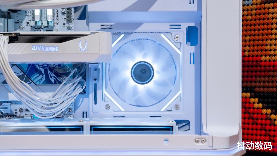 海景房机箱想要好看,有RGB灯光的风扇自然是必不可缺的了。这里搭配8把12cm先马巨浪磁吸积木风扇。