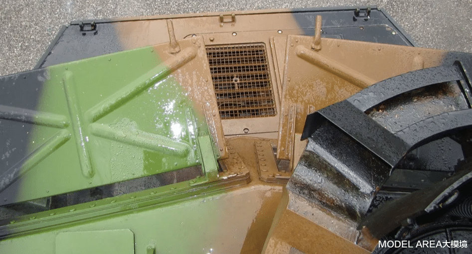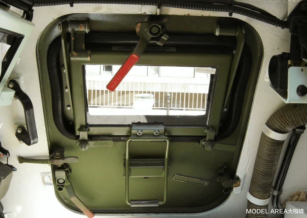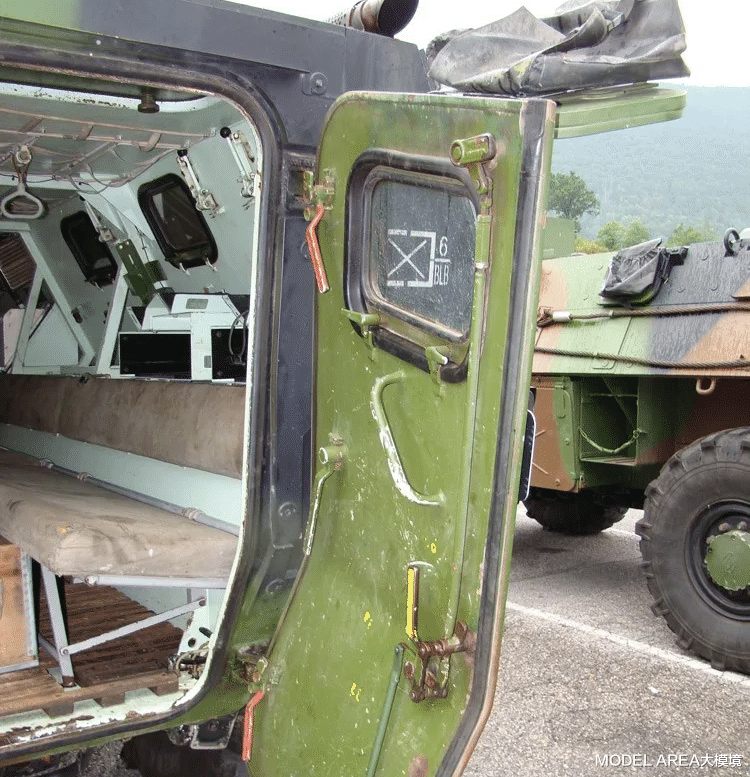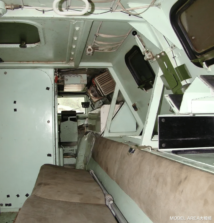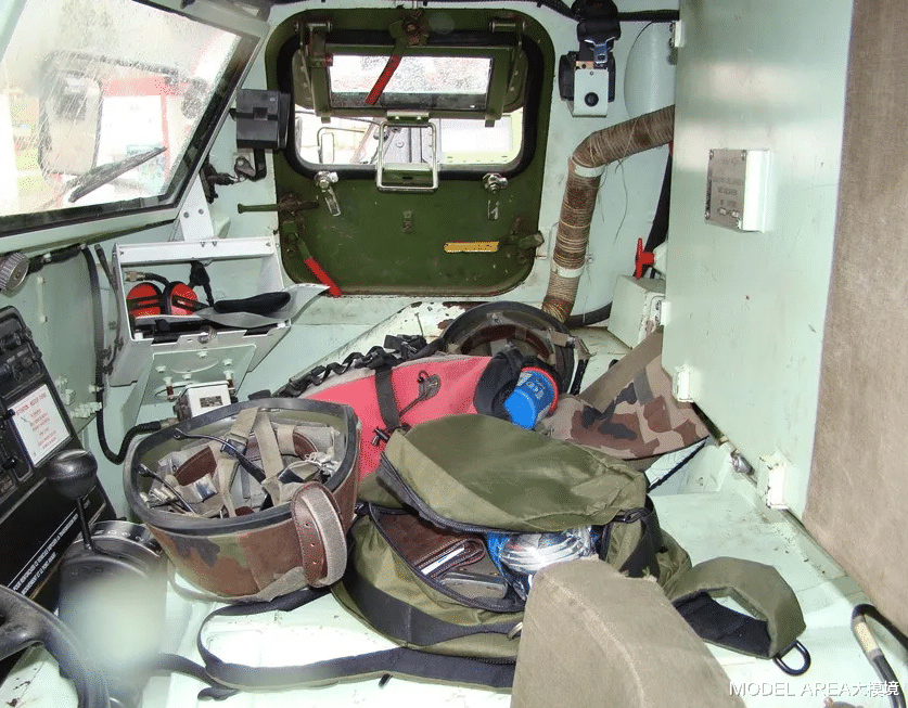 车辆后部有一扇装甲双门,可进入乘客舱。两个朝内折叠的长凳,每个长凳可搭乘5名士兵。机组人员通过两侧舱门进入前舱,驾驶员在左侧,炮手在右侧;车顶的两个额外舱口可进入武器系统,提供紧急出口。前窗户为防弹窗户。所有窗户都可以通过装甲板进一步保护,可以完全关闭或留下一个小的观察孔。发动机位于驾驶员后面,而车辆的右侧保持空旷,提供机组和乘客舱之间的通道。