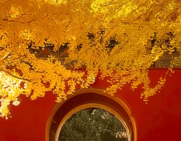 双清别墅:百年银杏+红墙绿瓦,毛主席旧居的历史感+秋景浪漫