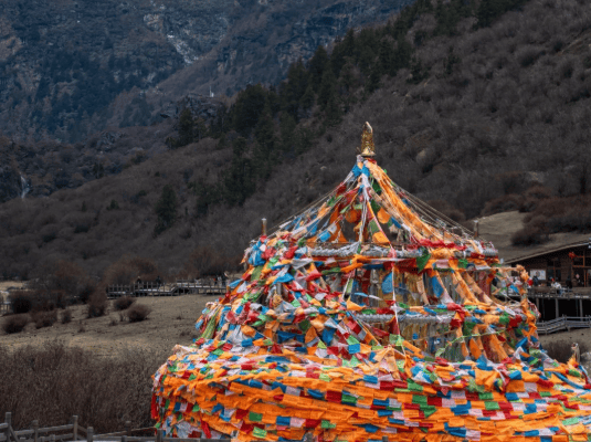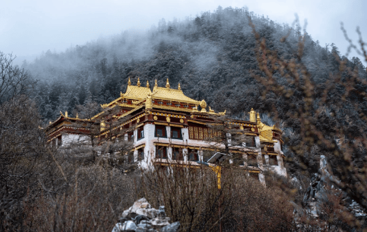 神山与彩林共舞:仙乃日、央迈勇、夏诺多吉三座神山巍峨矗立,山顶积雪与山腰金黄松针、山脚潺潺溪流交融,随手一拍都是《国家地理》大片既视感