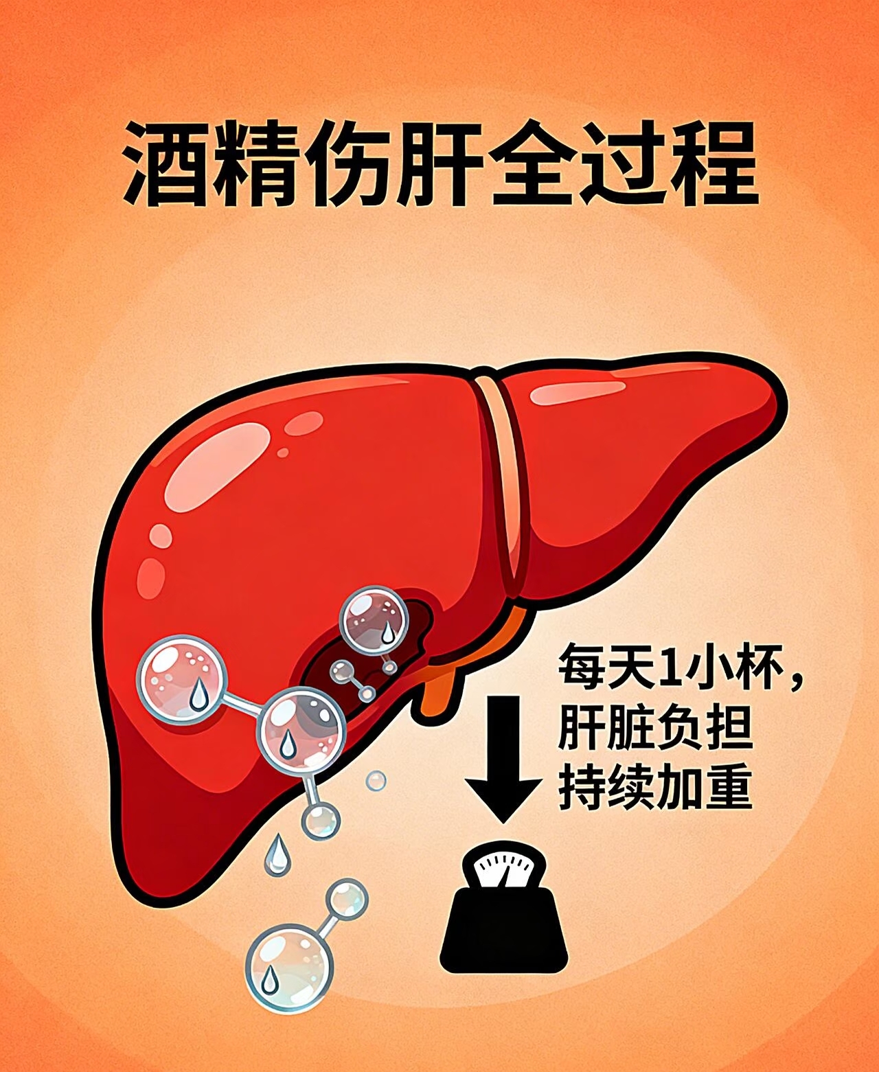 有人说“适量饮酒软化血管”,这早被科学推翻了。2016年《美国心脏病学会杂志》发布的一项覆盖90万人、为期12年的追踪调查给出铁证:长期饮酒会让房颤风险增加8%,而房颤正是诱发中风、心力衰竭的重要诱因。肝脏作为酒精代谢的“主战场”,更是首当其冲的受害者。酒精进入人体后,90%以上都需要肝脏进行代谢,先转化为有毒的乙醛,再分解为乙酸排出体外。长期每天摄入酒精,会让肝脏始终处于“解毒超负荷”状态,首先出现脂肪堆积,形成脂肪肝;若持续饮酒,会进一步发展为酒精性肝炎,进而导致肝纤维化、肝硬化,最终甚至诱发肝癌。数据显示,长期少量饮酒者,脂肪肝的发生率比不饮酒者高出3倍以上,而酒精肝患者的癌变风险更是显著增加。
