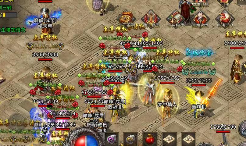 PK团战:秒切战士开 “护体神盾”,用 “野蛮冲撞” 推开敌人,接 “烈火剑法” 秒脆皮,配合道士的减益效果,反杀高战力玩家都不费劲。