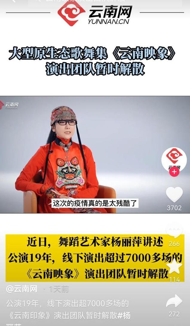 在疫情的冲击下,杨丽萍的歌舞团两度解散,这对她来说无疑是巨大的打击。