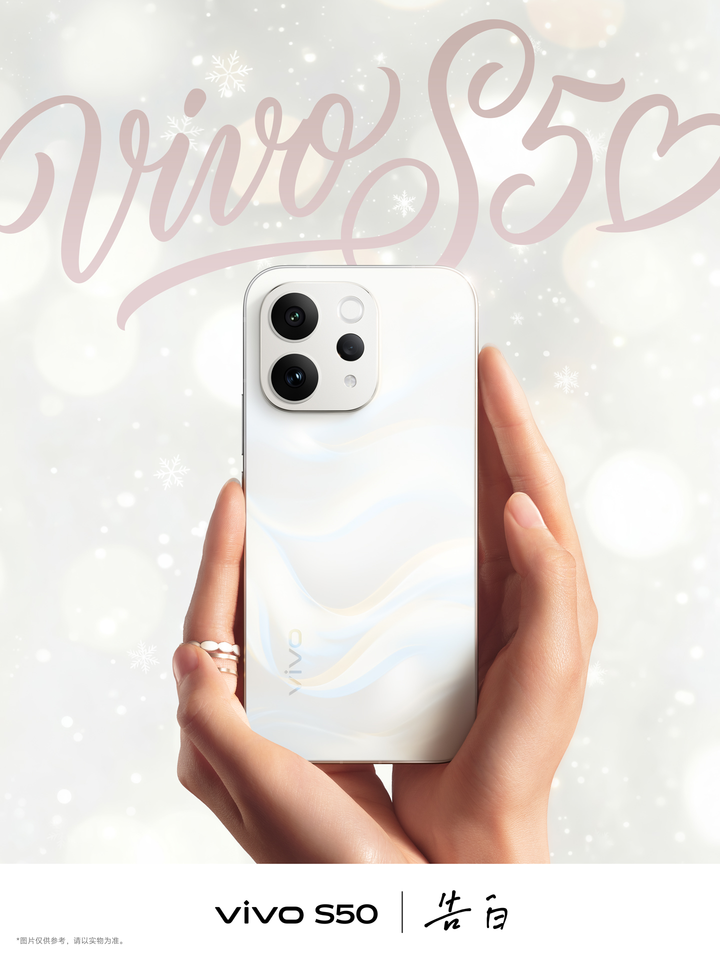 vivo S50系列在外观设计上再次升级,带来了全新的“告白美学”,通过灵动光影和多彩配色向年轻用户传递自由与个性。S50提供四种治愈系配色:告白、灵感紫、悠悠蓝和深空黑,每一种颜色都承载特定情绪与审美。特别是“告白”配色,白里透金的背板在不同光线下呈现多层次流动光影,像纱带轻盈起舞,又如冬日暖阳洒落雪地,给人治愈与浪漫的感受。