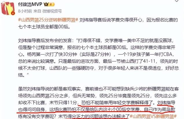 这场比赛的教训,对于新疆队来说无疑是沉痛的。球队的年轻球员们虽然展现出了不小的潜力,但由于整体阵容的不完整以及战术执行上的问题,最终未能顶住压力。而刘炜作为主教练,也需要从这场失利中吸取教训。毕竟,作为一位年轻的主帅,刘炜的成长空间仍然很大,如何在关键时刻做出正确的决策,如何在面对强敌时保持冷静,这些都需要他在以后的比赛中不断磨练。