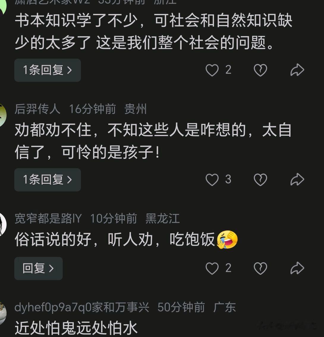 “劝都劝不住,不知这些人是咋想的,太自信了,可怜的是孩子!”