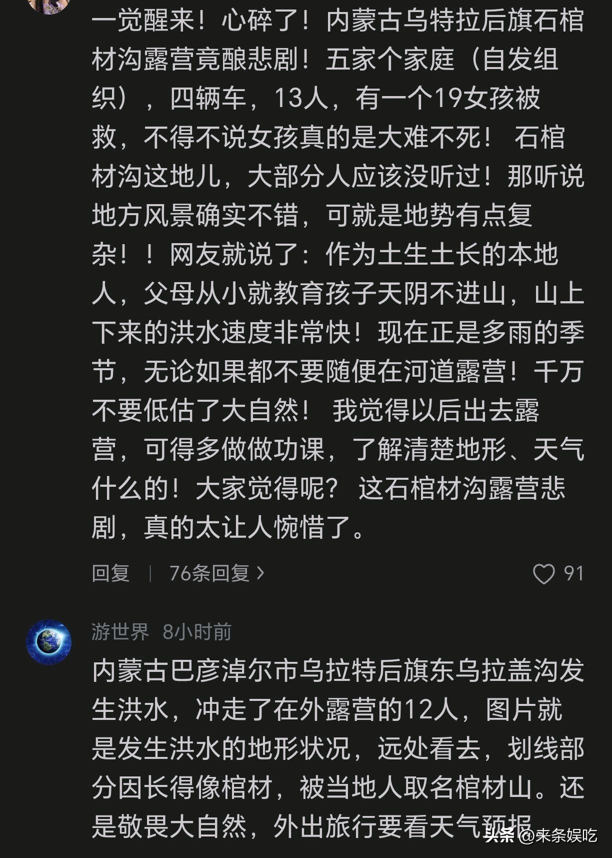 知情人透露,这13个人是5个家庭自发组织前往的,开了四辆车,知情人还介绍了当地的基本情况,说风景其实不错,但是地形复杂,但这13个人都缺乏对大自然的敬畏之心和一些露营常识。