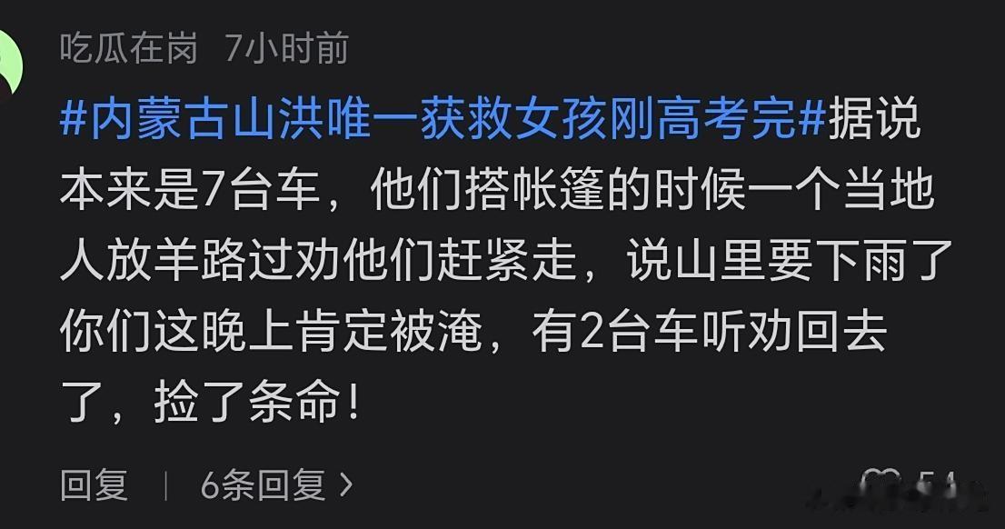 而且更可惜的是出事儿之前,当地有放羊的羊倌还好心提醒过这些人,天气不好,还是改天再来吧,随后还有知情人透露确实有人提醒过她们,本来她们是7辆车一起,但羊倌提醒过之后有车听劝走了,不然后果更是严重。