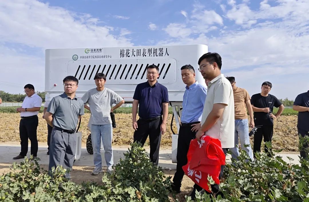 签约仪式后,双方代表共同考察了昌吉综合试验基地棉花大田表型机器人运行情况。该基地将作为合作的首个示范窗口,率先开展田间表型监测机器人等装备的试验应用,为技术推广积累实践经验。
