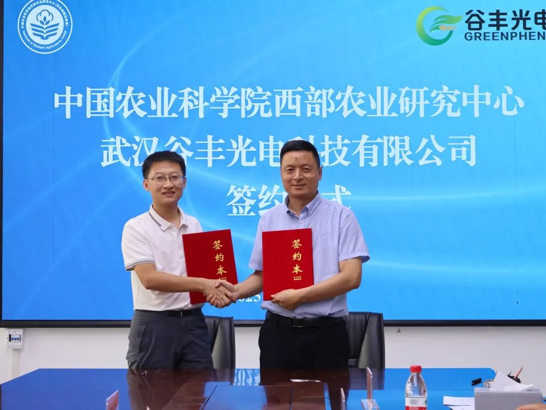 2025年7月28日,中国农业科学院西部农业研究中心与武汉谷丰光电科技有限公司签署战略合作框架协议。会议由西部中心副主任杨作仁主持,西部中心党委书记、主任(总指挥)高雷,谷丰光电董事长孙晋武、总经理叶军立、首席科学家杨万能教授出席签约仪式。