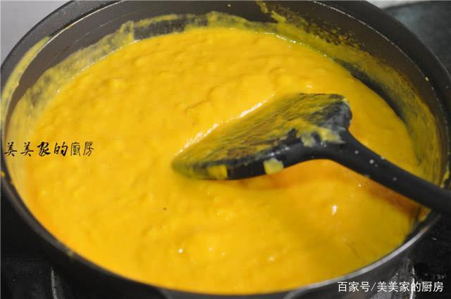 小火加热,搅拌到沸腾,不停地搅拌大约1分钟后关火,香喷喷的南瓜糊就可以吃辣!口感特别细腻,一碗下肚吃得饱饱的。