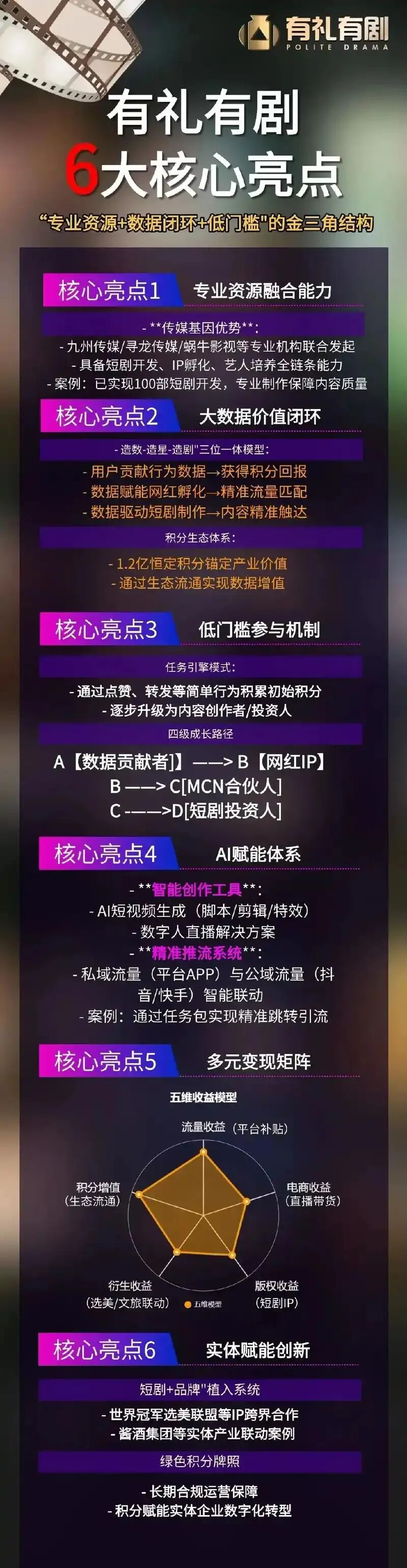 有礼有剧的本质,早已超越了单纯的短剧平台,而是一个融合了微短剧、私域流量、直播电商的综合性生态。它最聪明的地方,是把用户 “打发时间” 的看剧行为,变成了可量化、可变现的价值资产,构建起 “看剧 — 积分 — 消费 — 分红” 的完整闭环。