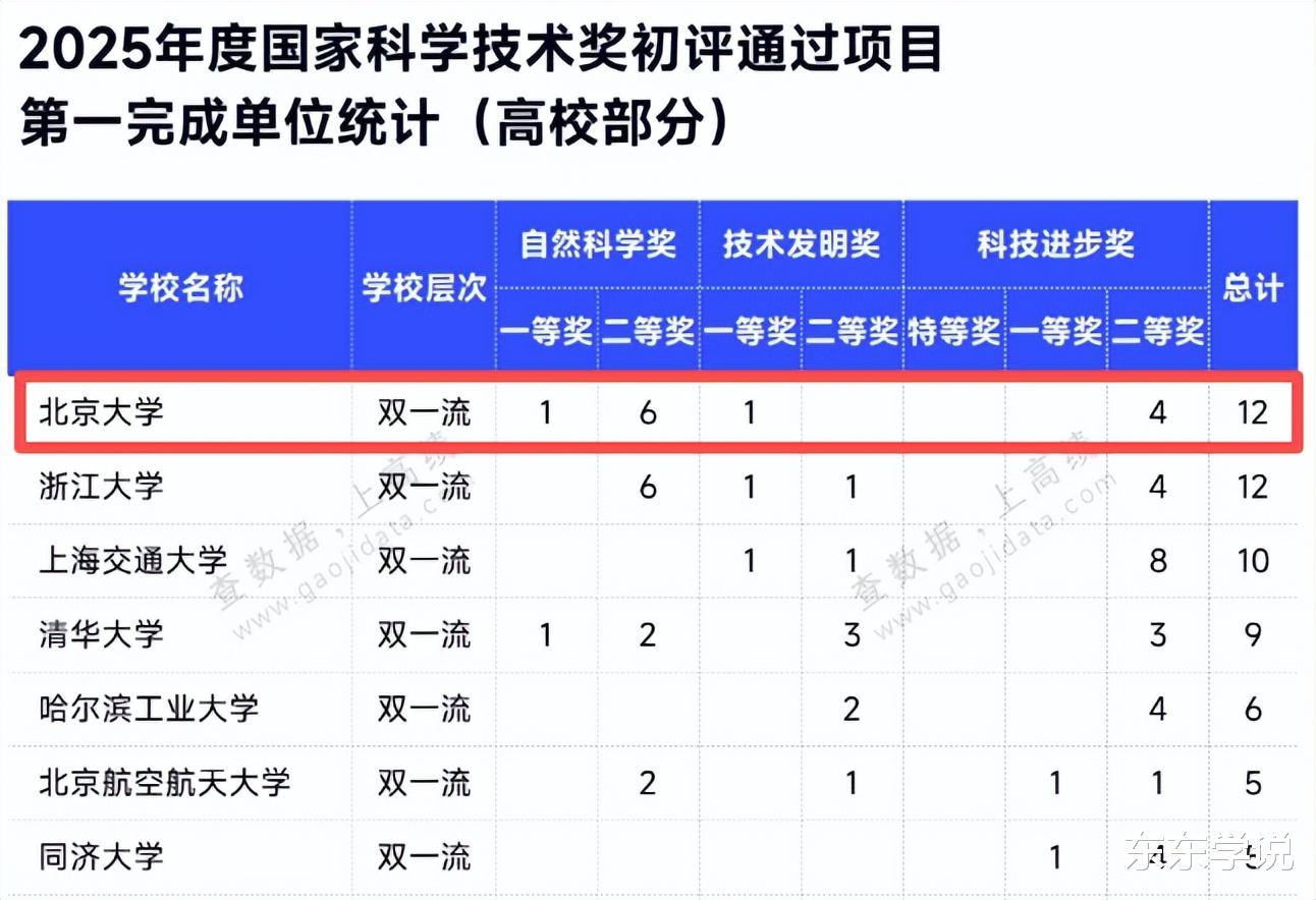 今年通过的通用项目中,北京大学以12项总量获得第一(并列第一,北大以7个自然奖领先浙大6个获得第一)。在含金量最高的自然科学奖中,北大有7个项目通过了初评,包含了一项自然科学一等奖与6项自然科学二等奖;是所有上榜单位中总量最多,也是含金量最高的单位。