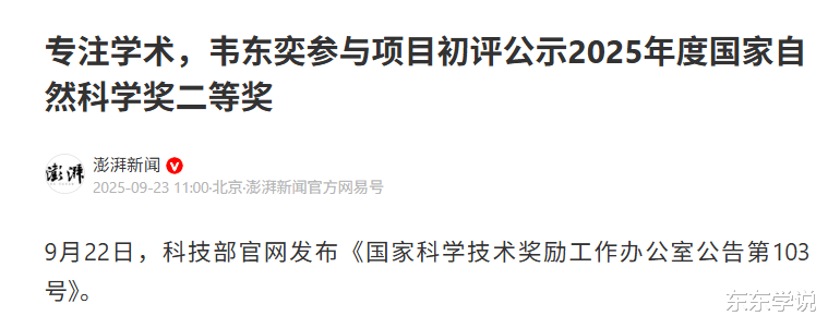 韦东奕为主要完成人的项目,能通过自然科学二等奖的初审,再次说明该项目的学术含金量非常高。从这方面说,韦东奕这些年专注学术,已经有所成了!