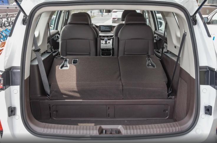 具体来看座舱空间表现,吉利睿蓝8虽定位紧凑型MPV,但尺寸接近中型MPV水平,二排独立座椅可以为身高1米77的体验者提供1拳半左右的腿部空间,长途乘坐舒适性勉强过关,第三排座椅相对短凑,只适合应急使用,膝部空间局促,身高超过1米7的乘客可能会感到不适。而在7人满载时,后备箱储物空间所剩不多,但二三排座椅放倒后,后备箱容积可以扩展到1800升,满足家庭出行的多样化需求。