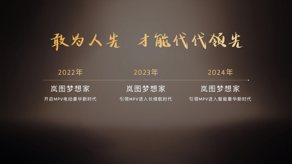 上市发布会主题为“梦想第一”,岚图汽车CEO卢放表示,“梦想家是MPV市场现象级的爆款产品,也是岚图汽车引领中国自主MPV走向“高端豪华”的坚定一步。从承载梦想到行业引领,岚图梦想家走了四年,凭借着敢梦敢想敢行动的执着,岚图梦想家超越国际品牌,成为中国MPV市场的领军者!”