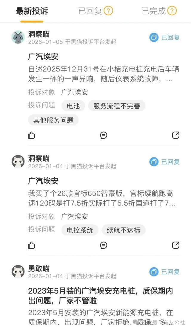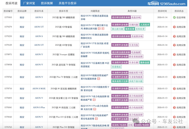据了解,近年来广汽埃安旗下多款车型均存在电气系统相关投诉,涵盖核心部件故障、售后沟通不畅等问题。