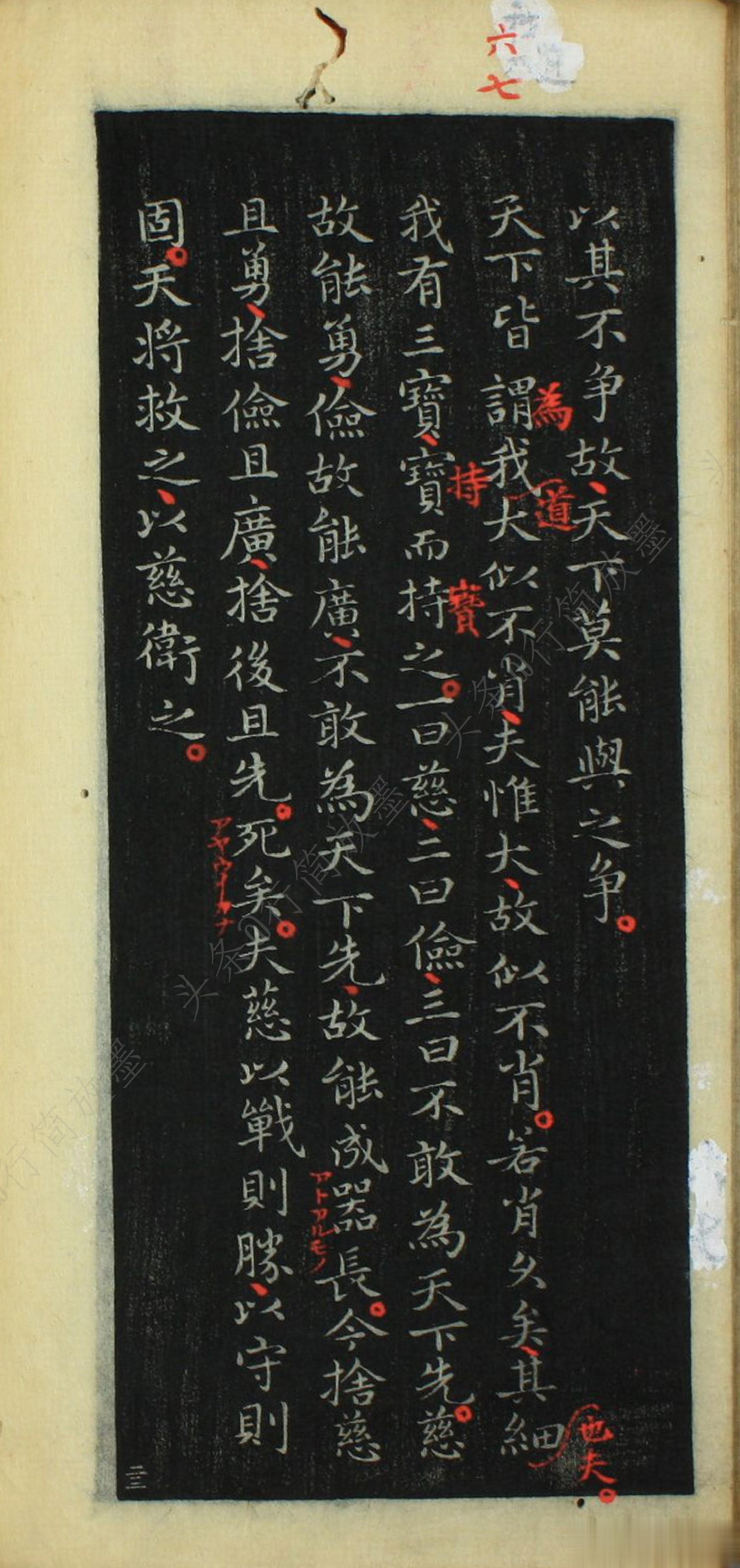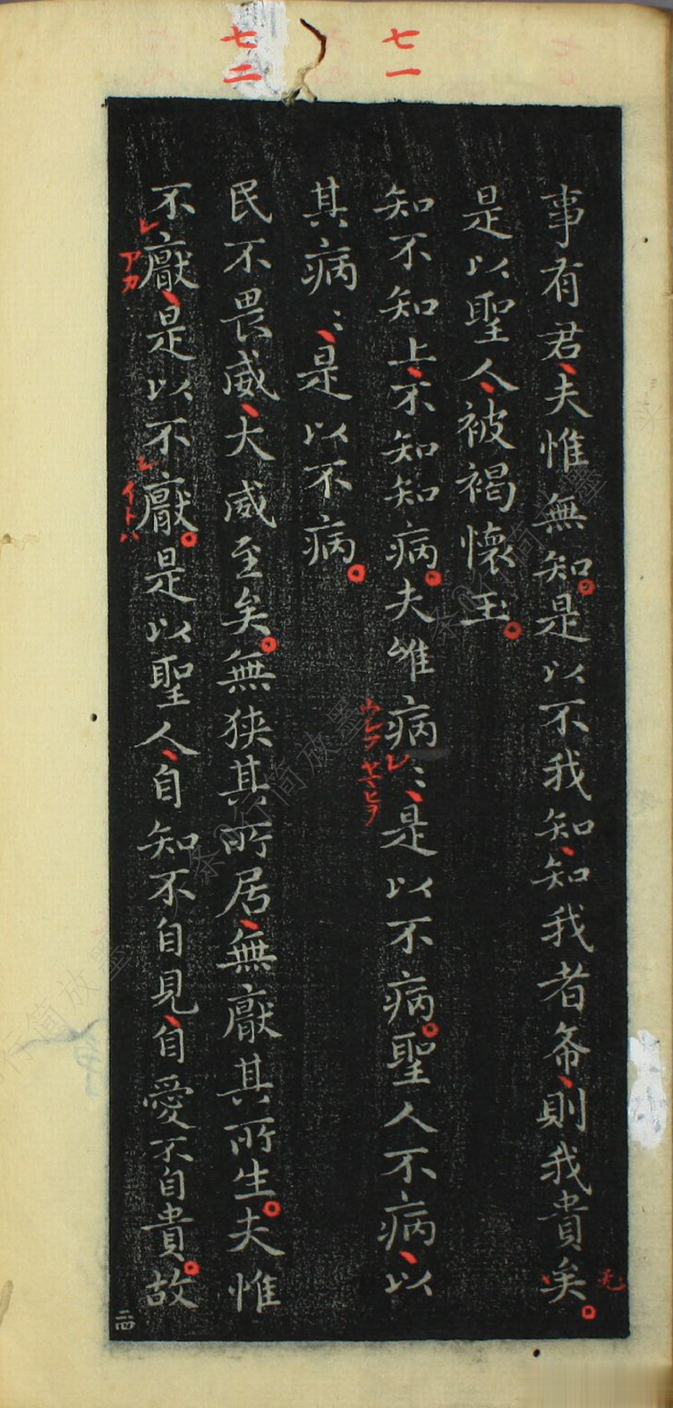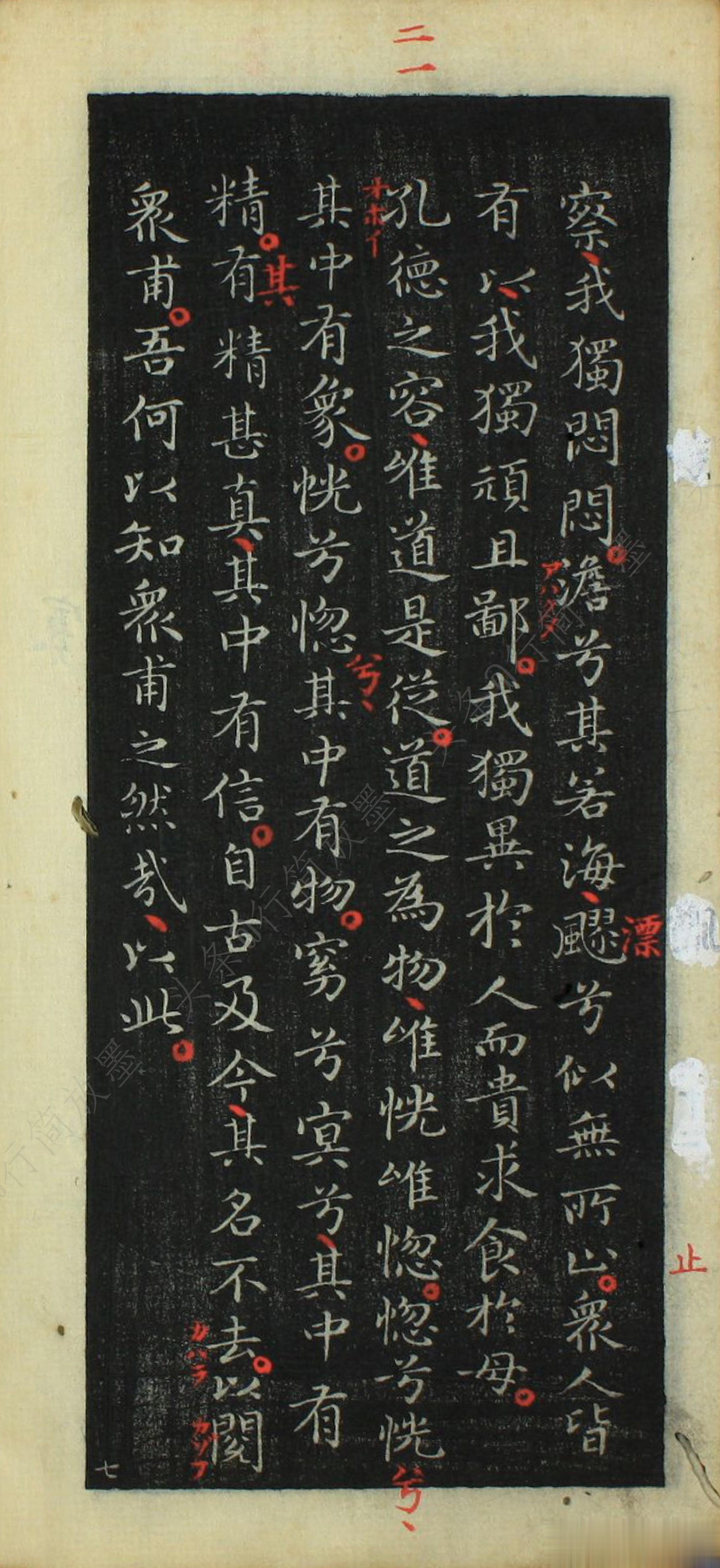 目前已知的版本中,有一个是王羲之小楷书写的《道德经》拓本,带有褚遂良的跋文,现藏于美国哈佛大学汉和图书馆。