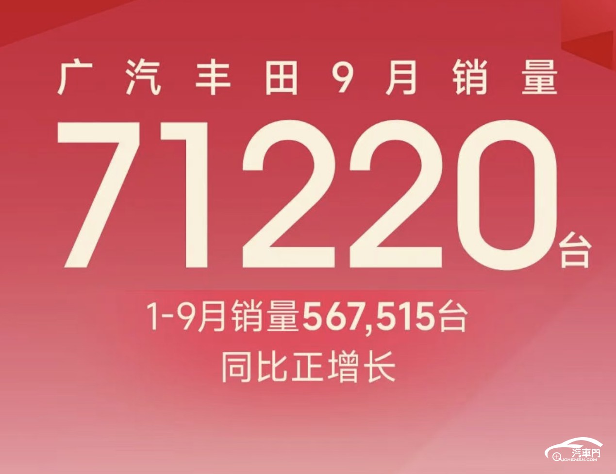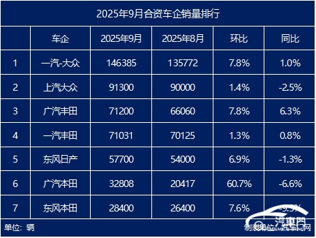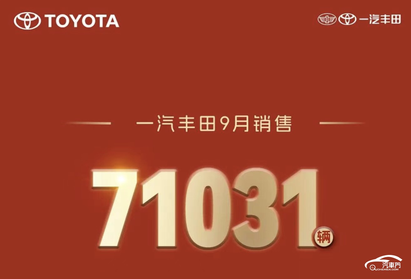 在众多合资车企中,一汽丰田的市场表现一直相对稳健。9月,一汽丰田共售出71031辆,同比增长0.8%。截至9月底,一汽丰田累计销量已达到587011辆,同比增长9.3%。
