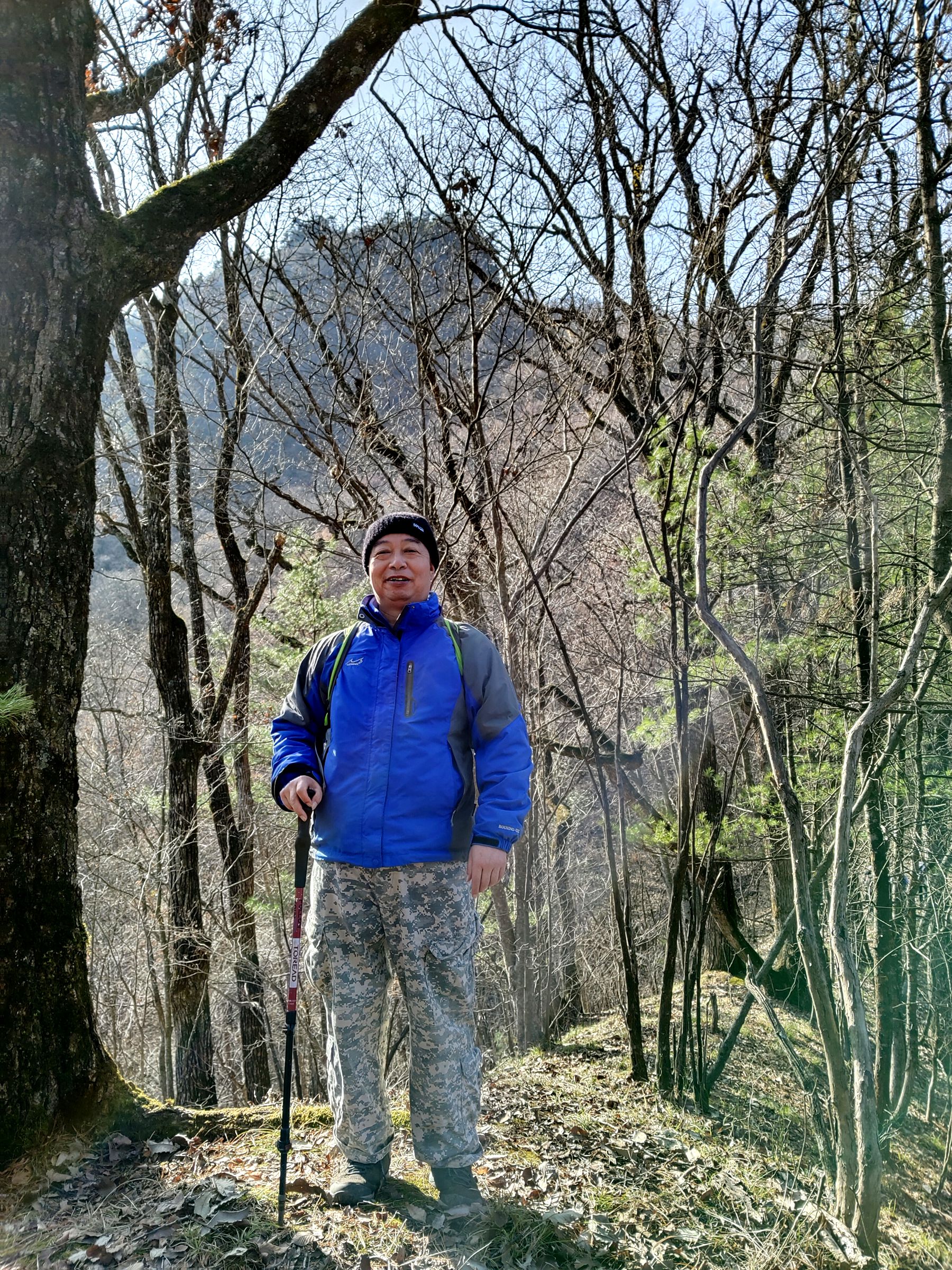 由中隙攀登而上,至半崖近峰巅处,已是申时。因冬日天黑较早,下山时间紧迫,遂原路返回,未能及顶。虽有点遗憾,但有幸近前一睹猫儿崖风采和真容,安全回归,心甚慰之。