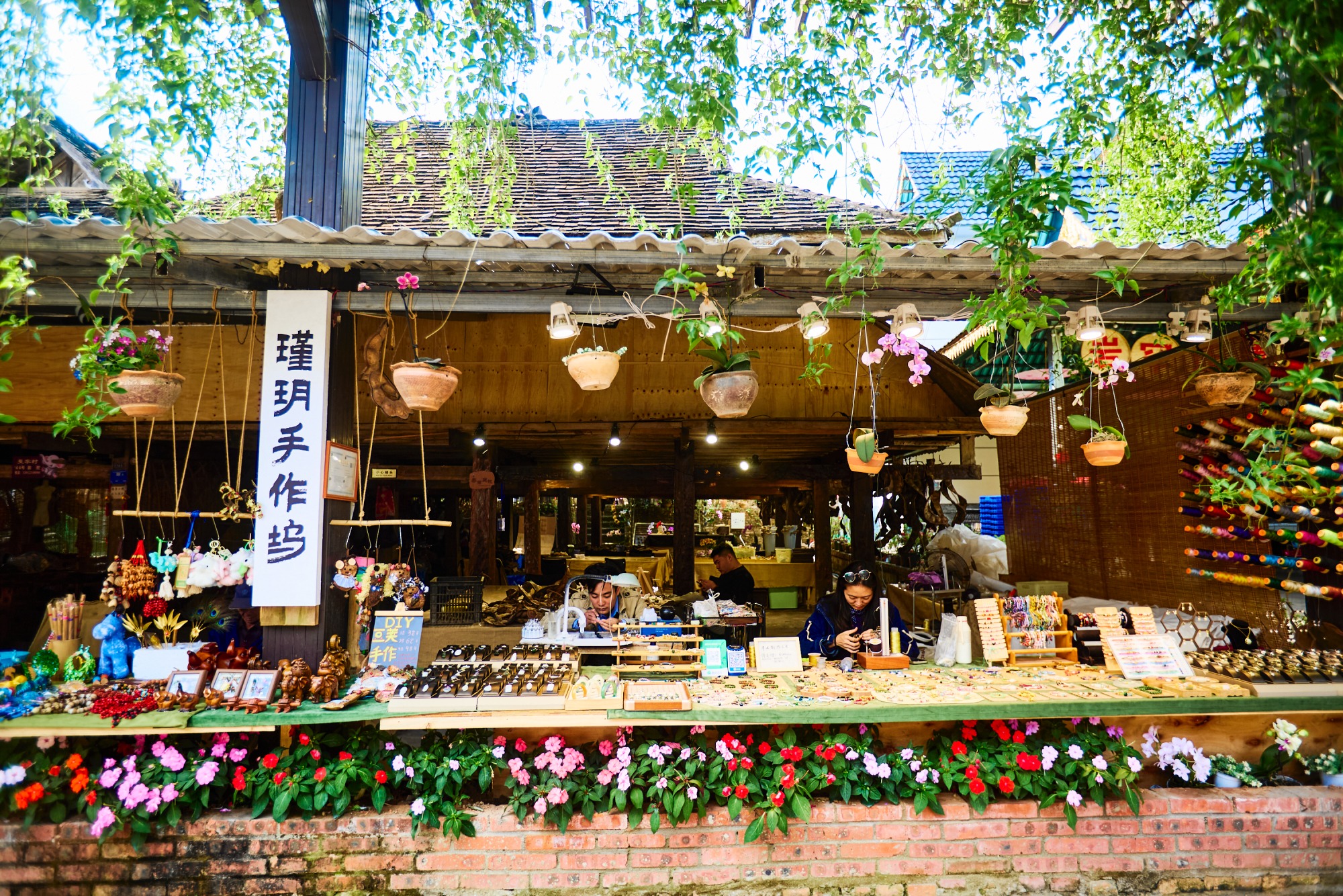 街上大大小小的手作店极多,一个个摊位相连,摆满了傣家银饰品、木雕、陶器等手工艺品,如果时间充裕可以自己亲手设计、制作,非常有纪念意义。