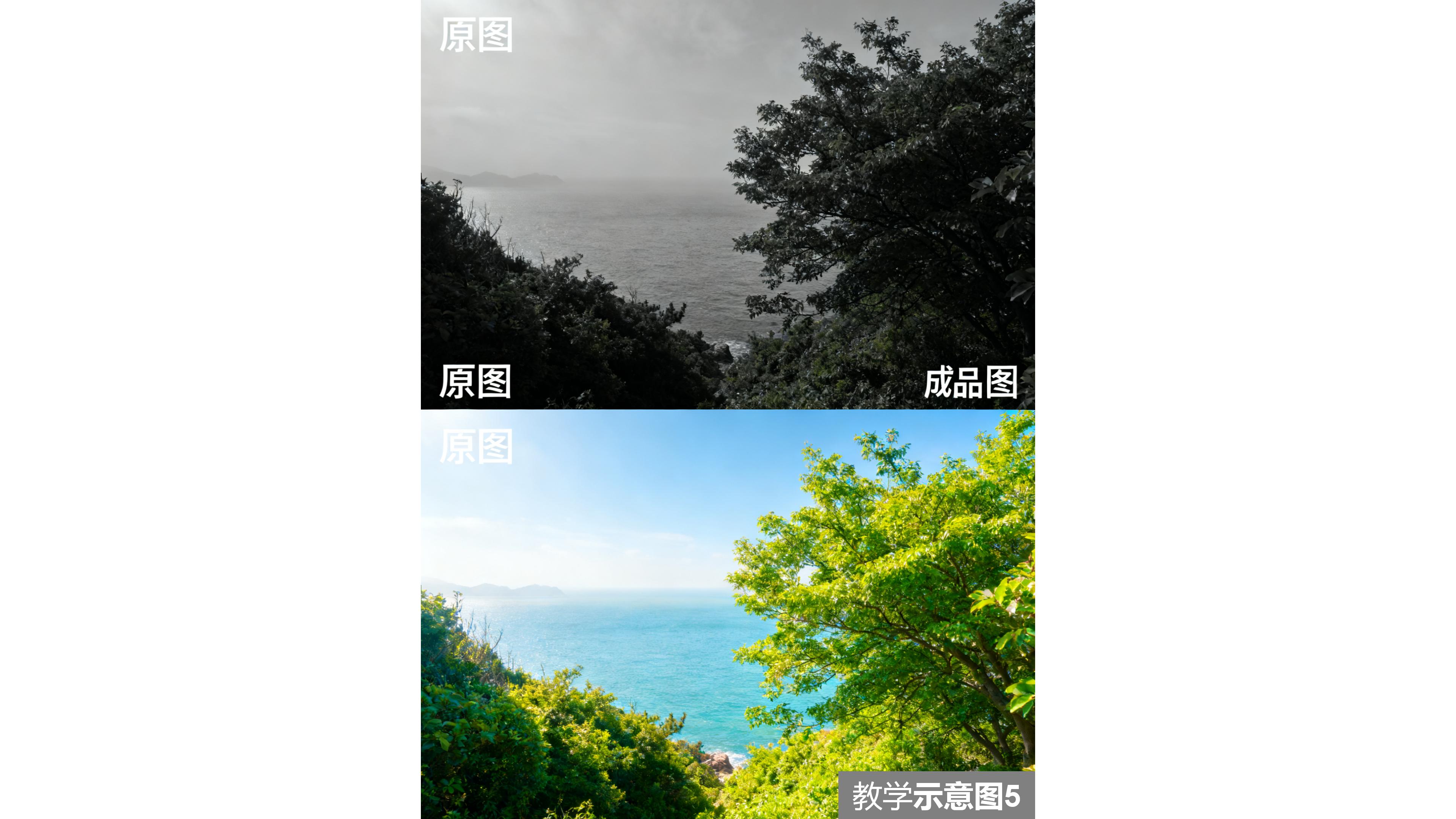 (图5:一张RAW格式原图与经过基础调整后的成品对比图,展示了解锁暗部、强化色彩和去除薄雾等操作的效果)