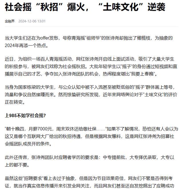 参考资料:金融界——社会摇“秋招”爆火,“土味文化”逆袭