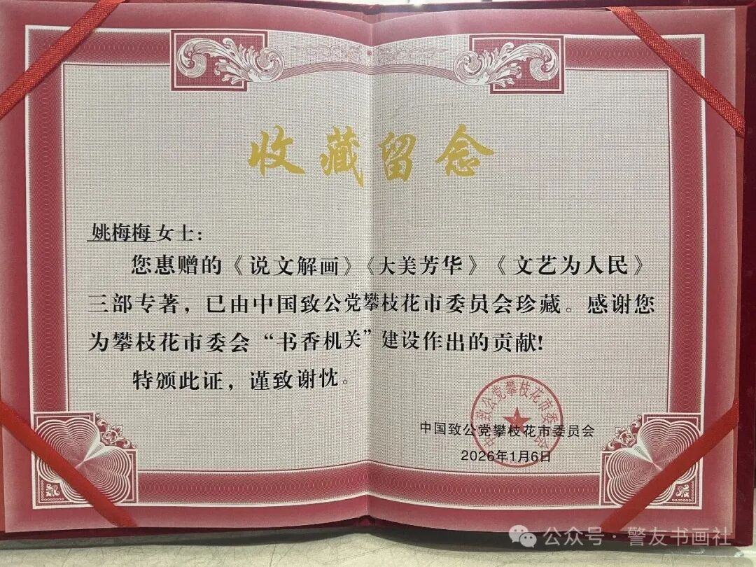 为支持致公党攀枝花市委会更好地开展“书香机关”活动,姚梅梅女士向市委会赠送了《说文解画》《大美芳华》《文艺为人民》三部专著。