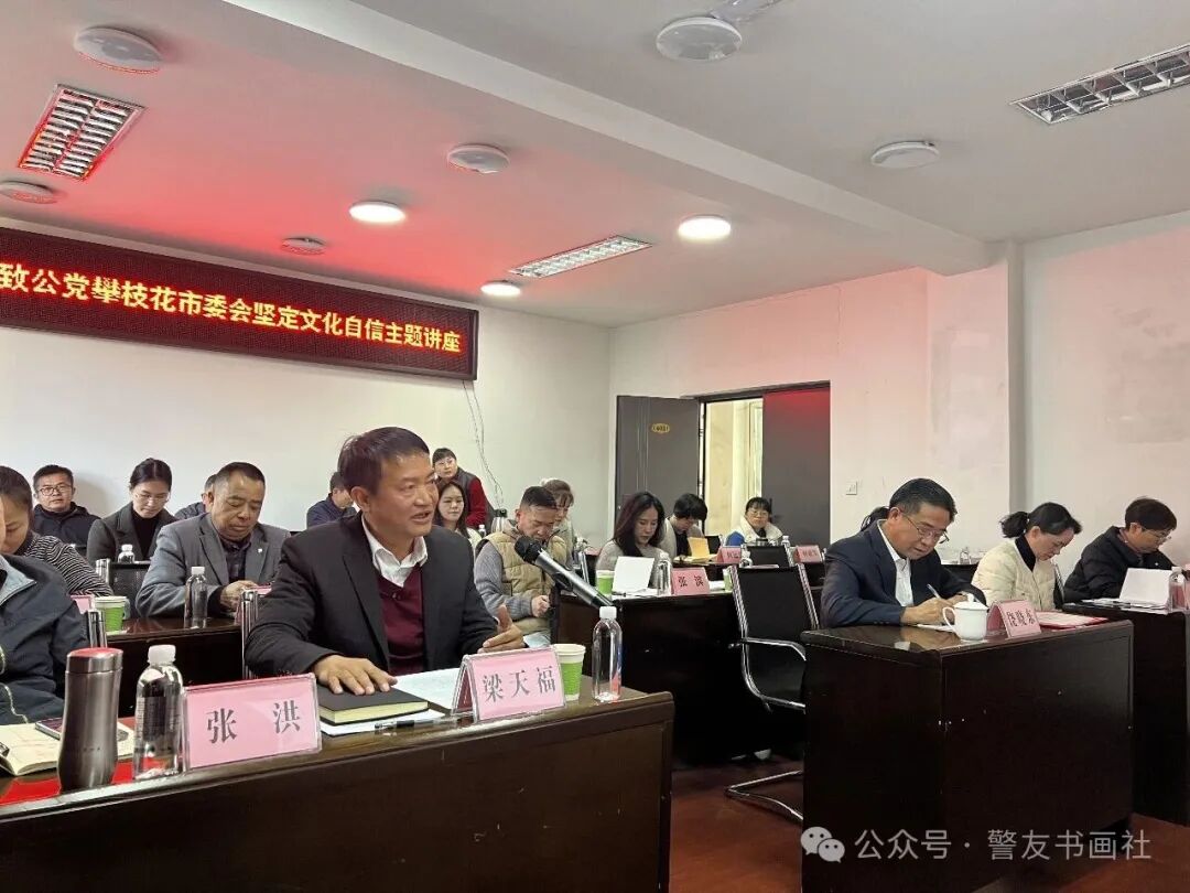 市政协副主席、致公党主委饶晓东在总结时,对姚梅梅女士的讲座给予高度评价。他说,这是一场高质量,高水平,高规格的学习会。文化自信是基础和源泉,为其他三个自信提供精神支撑,是更深层、更持久的自信。它源于中华优秀传统文化、革命文化和社会主义先进文化,渗透于道路、理论、制度中,增强民族认同感和凝聚力。姚梅梅女士把崇德尚艺作为追求,把为人,做事,从艺统一起来,有效的树立了新时代年轻人爱党爱国爱人民的文化形象,为党派增加了吸引力、感召力。最后他强调,2026 年是“十五五”开局之年,全市致公党党员要深刻认识坚定文化自信的重要意义,要将文化自信转化为服务地方发展的具体行动,以新担当、新作为助力攀枝花共同富裕试验区建设。