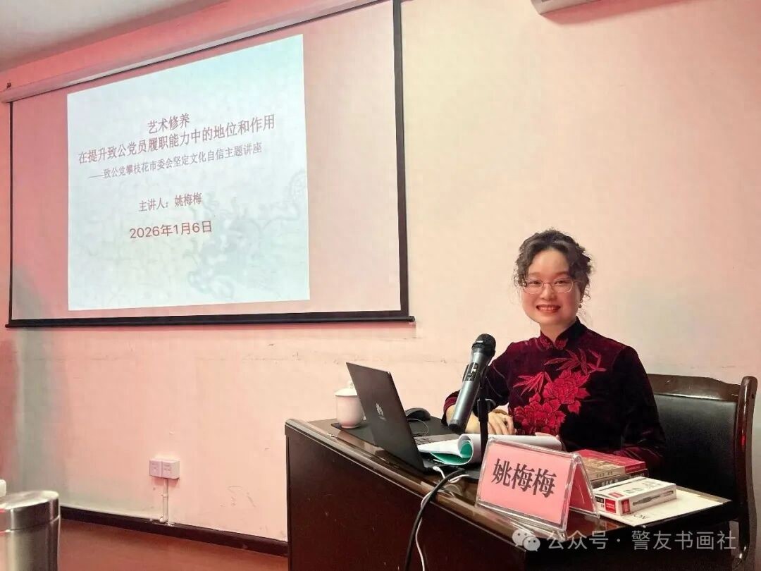 2025年1月6日上午,有幸在致公党攀枝花市委聆听我党诗书画艺术家姚梅梅的文化讲座,浅谈感受。姚梅梅老师的讲座以“文化传承+价值引领”为核心,兼具艺术深度、思想温度与传播力度,堪称新时代文艺普及与价值传播的典范之作。其核心亮点集中于三方面。