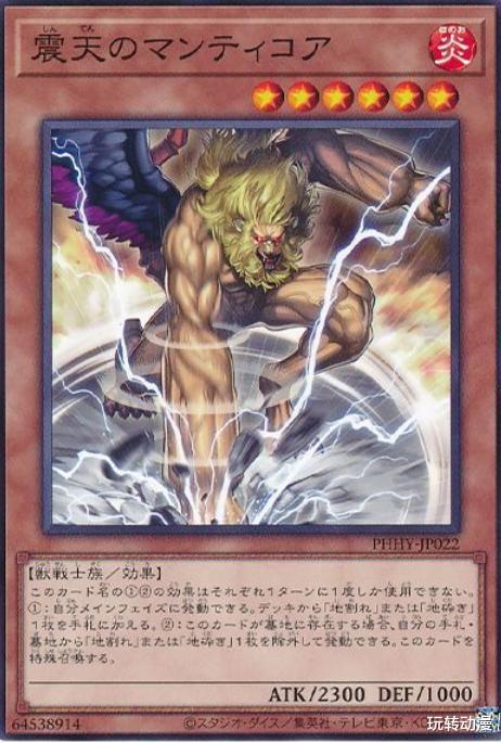 震天之蝎尾狮卡牌效果:这个卡名的①②效果1回合各能使用1次。①:自己的主要阶段可以发动。从卡组将1张「地割れ/地裂」或者「地砕き/地碎」加入手牌。②:这张卡在墓地存在的场合,可以从自己的手牌或墓地将1张「地割れ/地裂」或者「地砕き/地碎」除外发动。将这张卡特殊召唤。