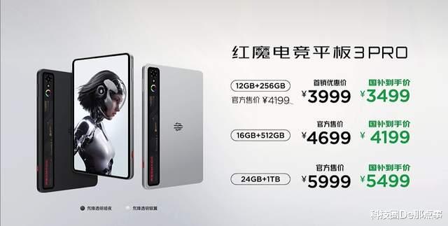 红魔影刃手柄3:配备AAC线性马达、六轴陀螺仪与霍尔摇杆,无线1000Hz回报率,防磨摩摇杆,微动+线性双模扳机,500万次机械微动按键。除了支持红魔电竞平板3 PRO,还支持Switch和市面上其他的9英寸以内的平板和手机使用,售价599元,同时还推出红魔幻刃手柄三国志联名版,售价399元。