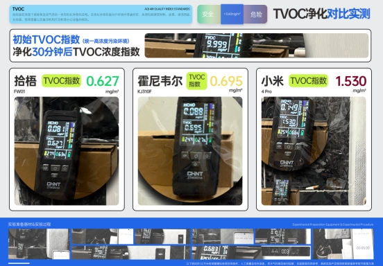① TVOC净化测试(用时短,数值越低越好)
