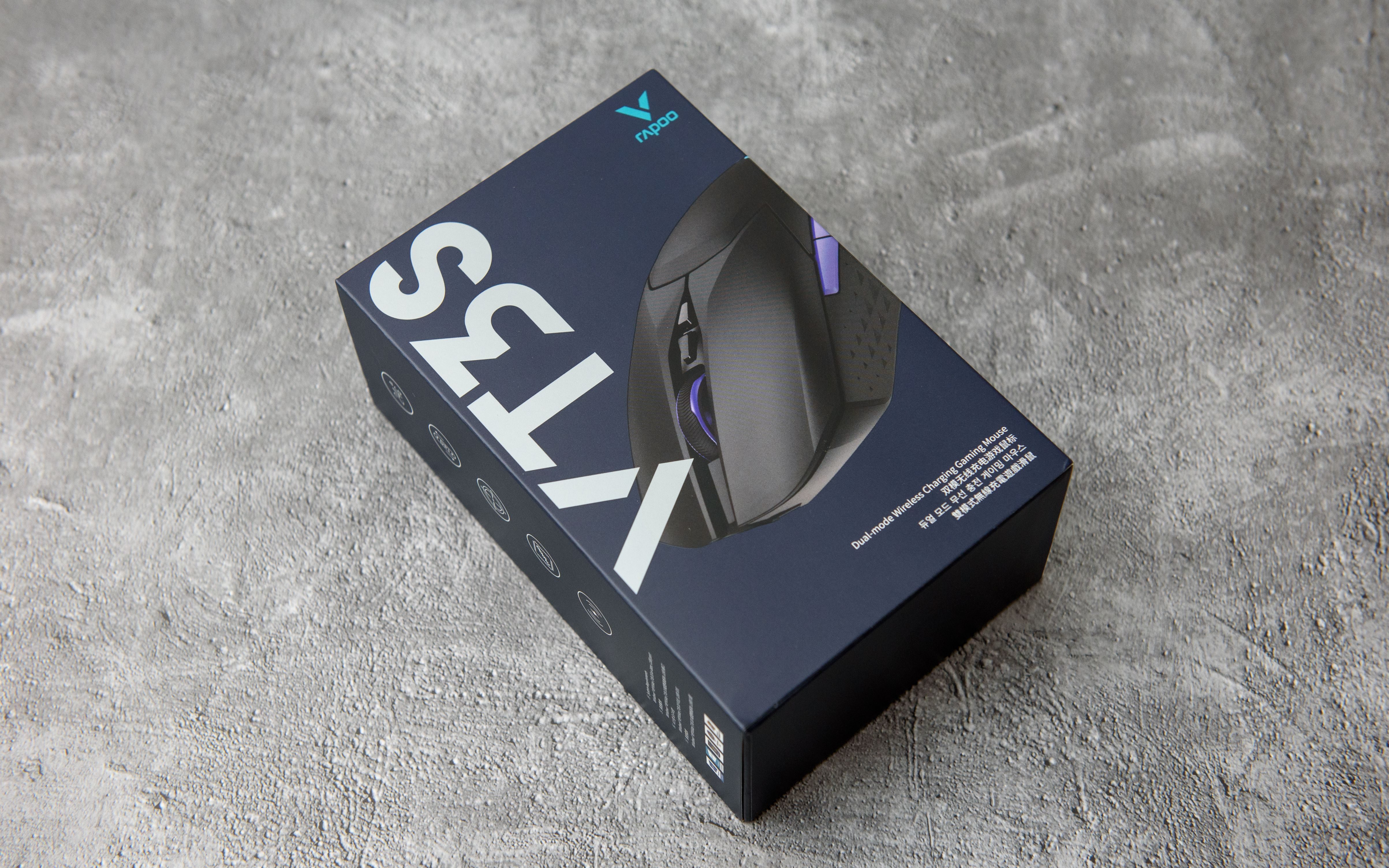 一. 开箱及外观▼雷柏VT3S延续了VT系列传统风格,蓝黑主色调配产品照片