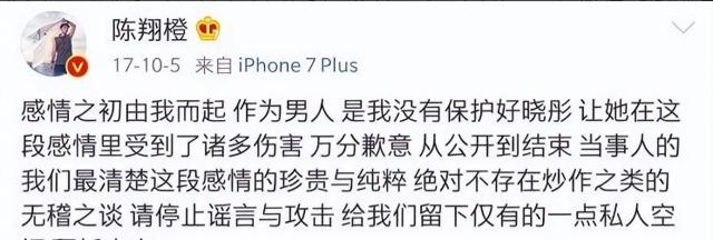 4天后,陈翔也跟着发了一条动态,确认了两个人分手的消息。