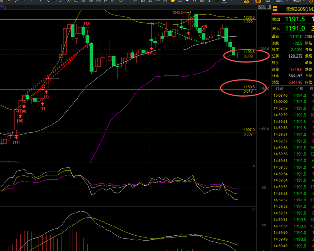 技术指标:焦煤日线收带上影阳线,显示高位震荡整理态势,多头趋势稳固但超买回调压力初步显现。夜盘预计延续震荡偏强,依托均线系统支撑向上试探,同时受高位获利盘离场制约。价格稳稳站上5日、10日均线,短期支撑强劲,中长期受20日均线(1280元/吨)压力制约;短期RSI指标升至65(中性偏强区间,接近超买),KDJ金叉形态延续,多头动能充沛但后续发力空间收窄;5分钟级别在1252-1258区间整理,短期依托1240元/吨形成强支撑,反弹力度受现货弱势与均线压力双重影响。