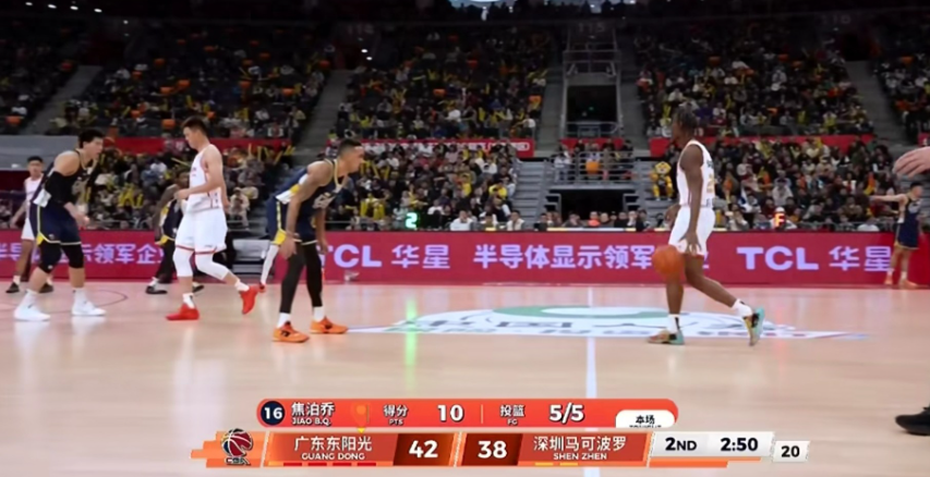 首节比赛广东东阳光进入状态较慢,手感一般,而深圳则趁机捉住机会得分,第一节深圳就以24:16领先了8分,而次节比赛广东摆出徐杰、奎因、萨姆纳、杜润旺、焦泊乔这套新小阵容,主打一个快速转换,这套阵容也收到效果,广东一开局打出一个15:0攻击波返超了比分,单节赢回了7分,半场比赛结束广东49:50落后1分!
