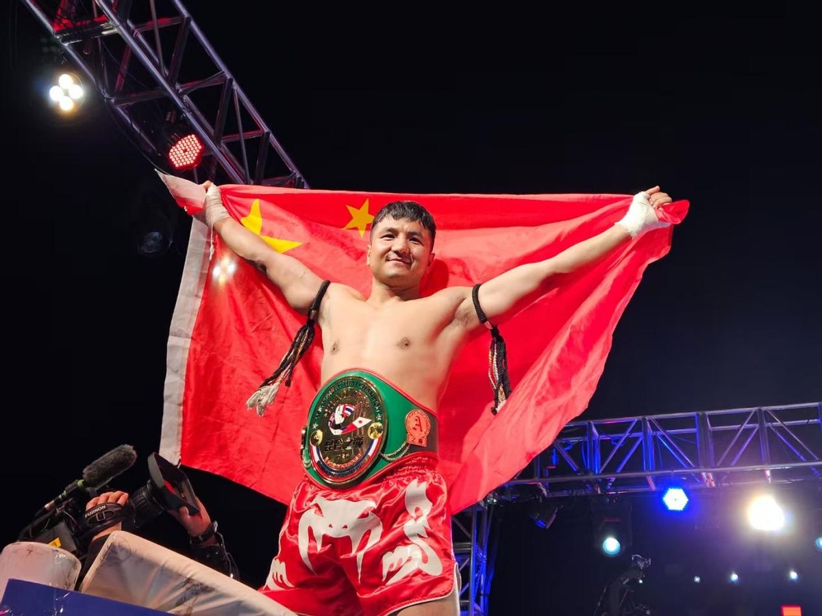 不久前的比赛中,阿力木·阿布力米提KO对手斩获金腰带