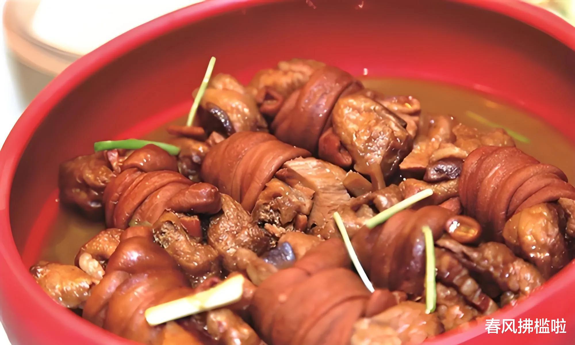 扎肝(豆腐皮包五花肉、猪肝、笋干等扎起红烧)
