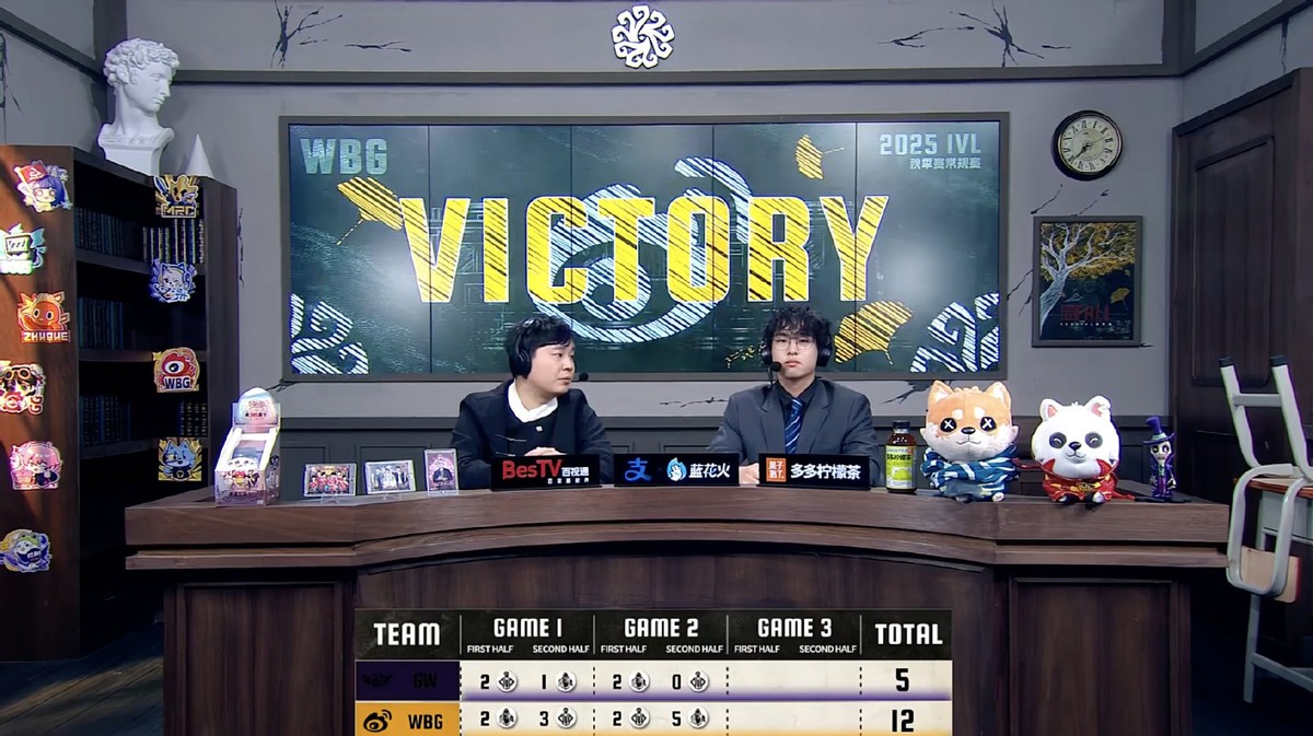 2025年10月18日,第五人格IVL秋季赛常规赛第三周第二日的比赛结束,在当天的比赛中,北京WBG以2胜0平0负的战绩(12:5)击败了GW,以下是本场比赛战报。
