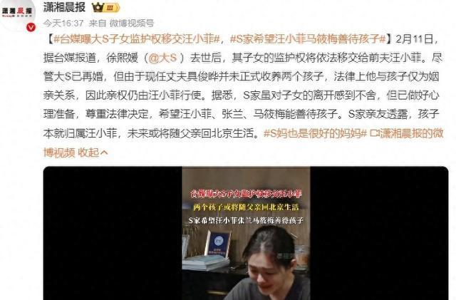 大S孩子监护权正式归属汪小菲,S妈发声:希望马筱梅善待孩子!