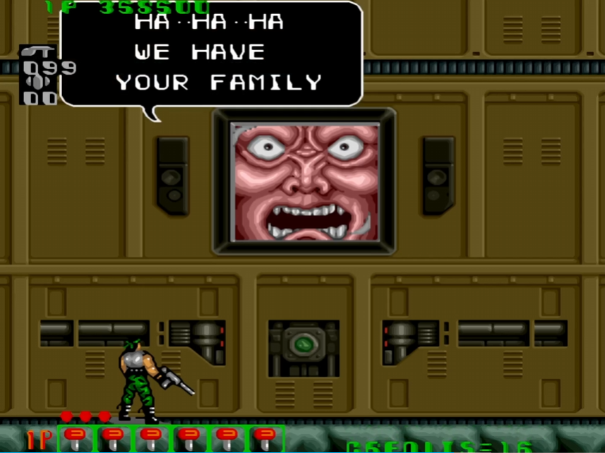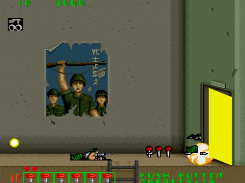 小时候的笔者第一时间看游戏内容,就感觉这完全就是与《魂斗罗》是不沾边的游戏,后来还遇到其他街机厅贴上了“午夜反暴”这个名字,弄得笔者长大之后好长一段时间搜出来的游戏是同为Data East家旗下的《午夜杀生》游戏……话说当年的街机厅老板跟盗版商得了同一种给游戏改名的病,就不能好好用游戏原来的名字啊?