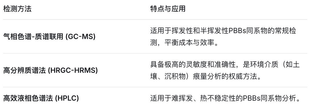 为有效监控PBBs污染,一系列标准检测方法已被建立并广泛应用。