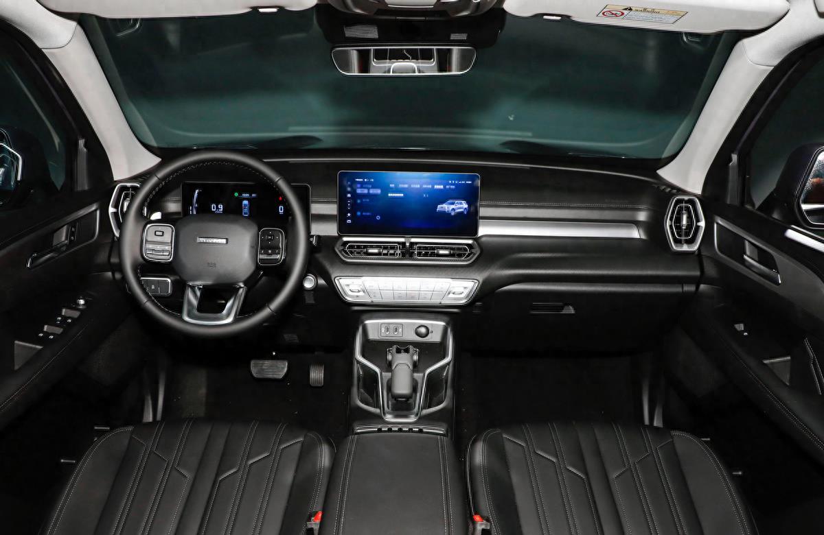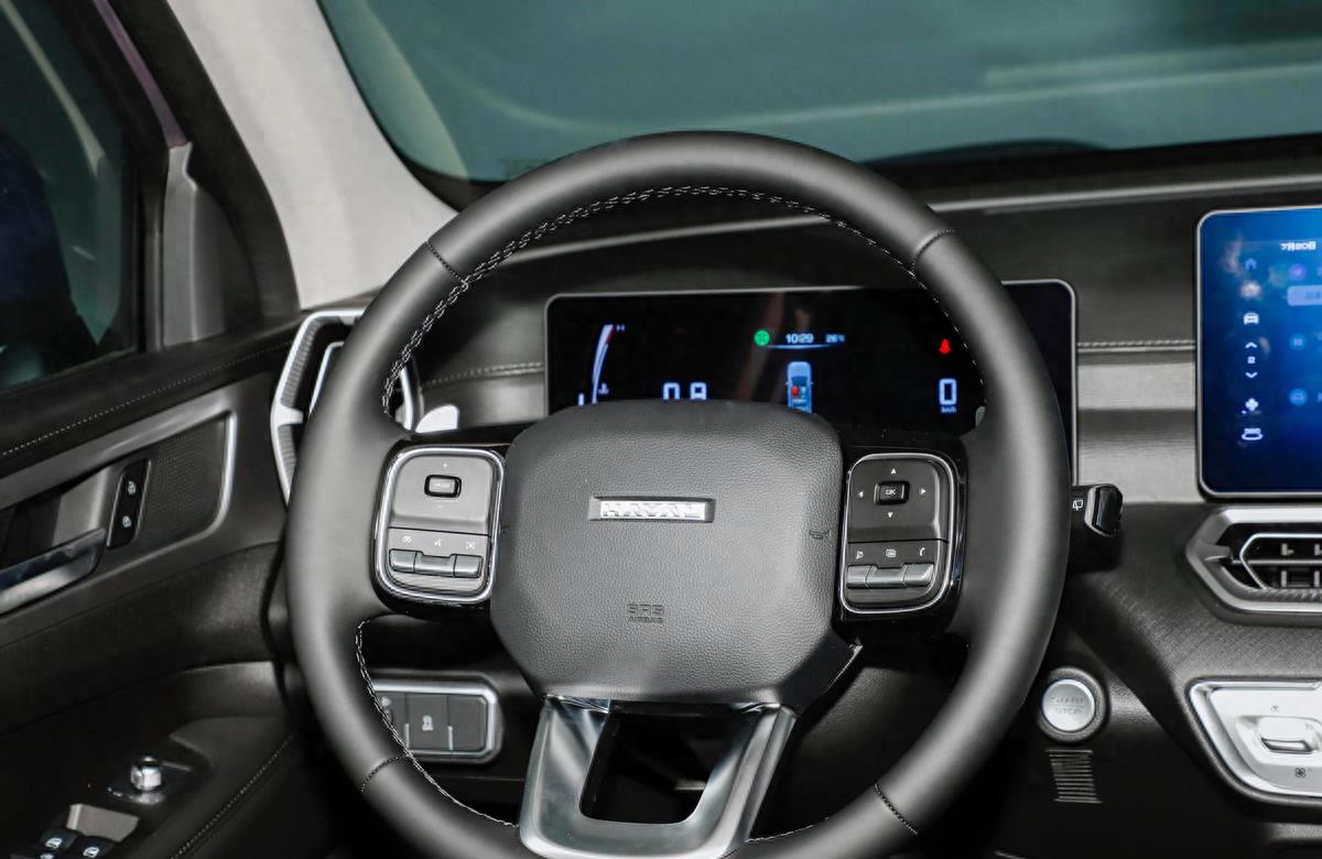 内饰方面,哈弗H5采用了家族式设计,主要以黑色为主色调,中控台覆盖大量软性材质,中间点缀银色饰板,增加了层次感。12.3英寸的悬浮式液晶屏内置了丰富的内容,使用方便,下方还配置了一定数量的物理按键。方向盘为三辐式多功能方向盘,两侧用真皮包覆,手感出色。配置方面,哈弗H5装备了一系列高级驾驶辅助系统,包括车道偏离预警、主动刹车、前方碰撞预警、后方碰撞预警、后桥差速锁、360度全景影像、自适应巡航、并线辅助、车道居中保持等。