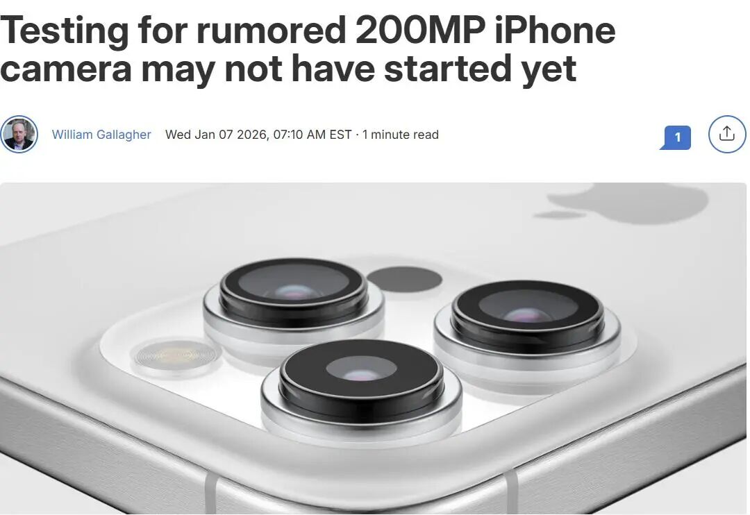 今年大家最关心的,肯定是iPhone 18 Pro Max的主摄会不会上2亿像素。去年就有消息说苹果在测试,搞得不少人心里痒痒的,毕竟安卓阵营早就亿级像素满天飞了。但最近风向有点变,多个靠谱消息都显示:2亿像素这次可能真的没戏,得再等几年。