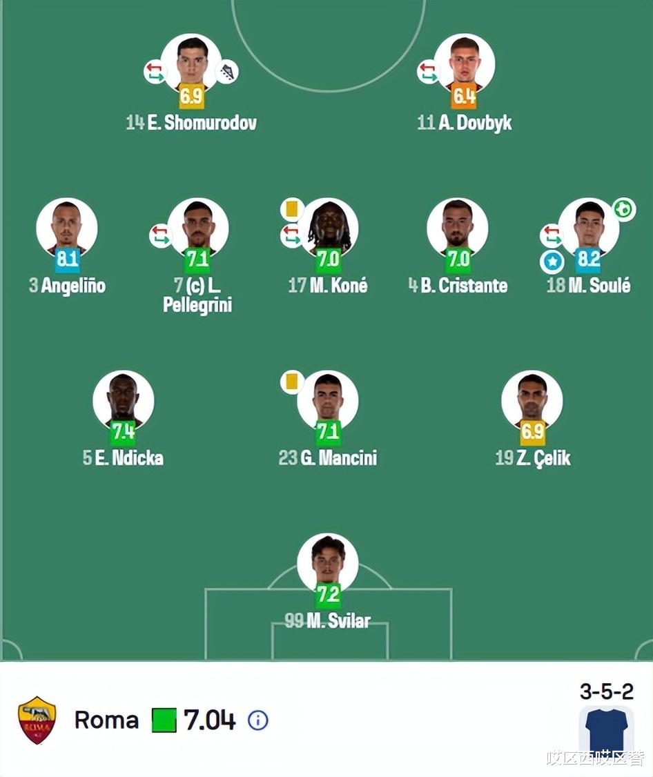 到下半时开打后国米疲态尽显,此时,补锅匠允许自己队员们跟国米对轰了,特别是在帕瓦尔伤缺后,罗马下半时开启对他这路的针对性模式,安吉利诺、苏莱,在佩莱格里尼、克里斯坦特的支持下,多次飞奔到国米的边路制造威胁,小因扎吉对此的确是没有真正的好办法了,人员不够,体力不足,还可咋办?