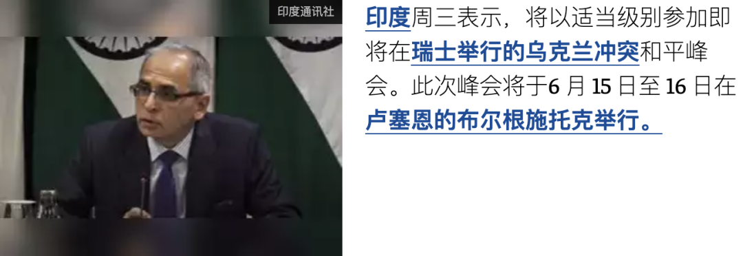 答案并非如此。印度外交部长维奈·夸特拉回应了国外记者,表示:印度将以“适当级别”出席在瑞士举行的和平峰会。